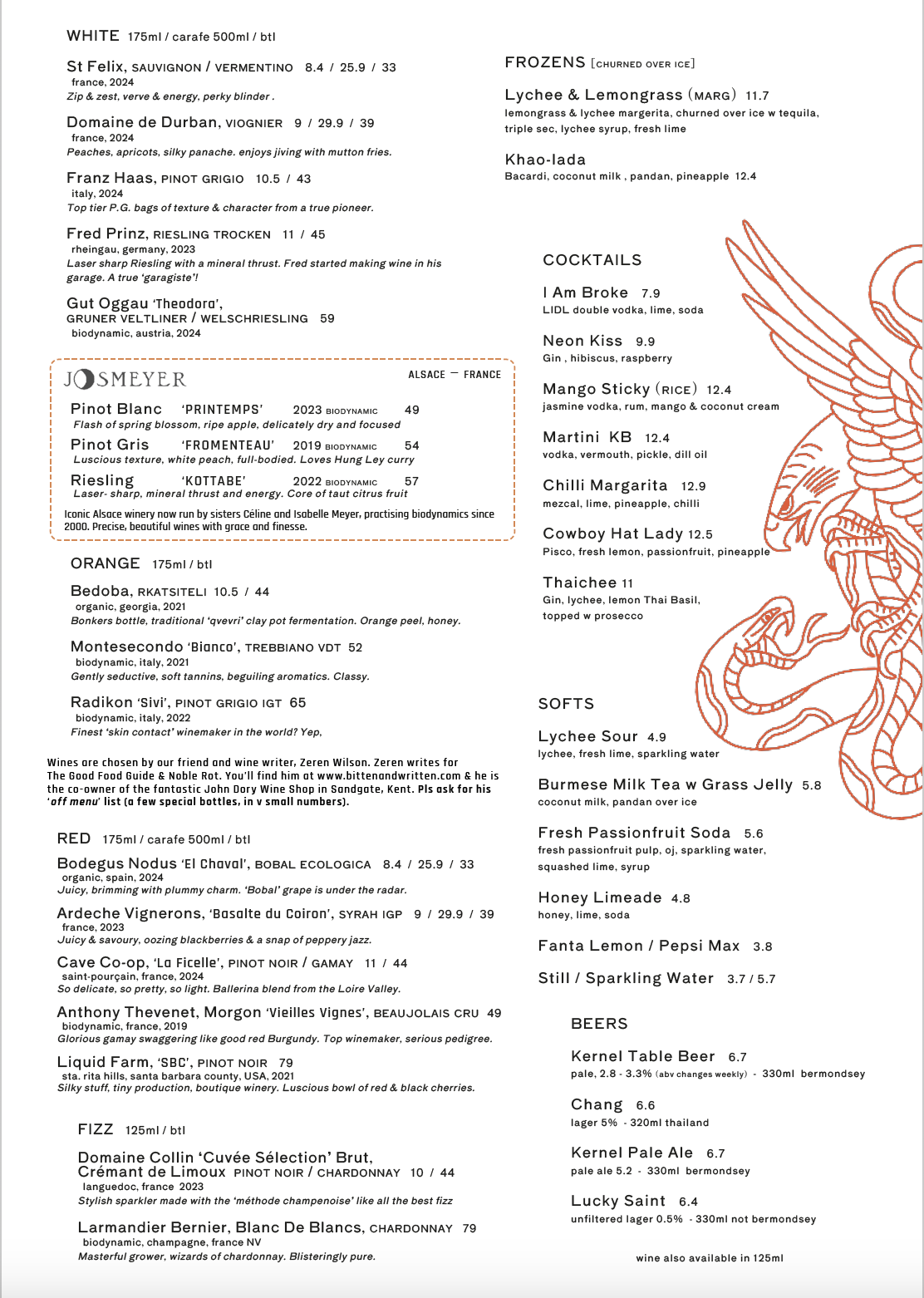 Expect fresh, punchy cocktails, natural and food-friendly wines, cold beers and easy-drinking serves that work beautifully alongside our northern Thai-inspired menu.